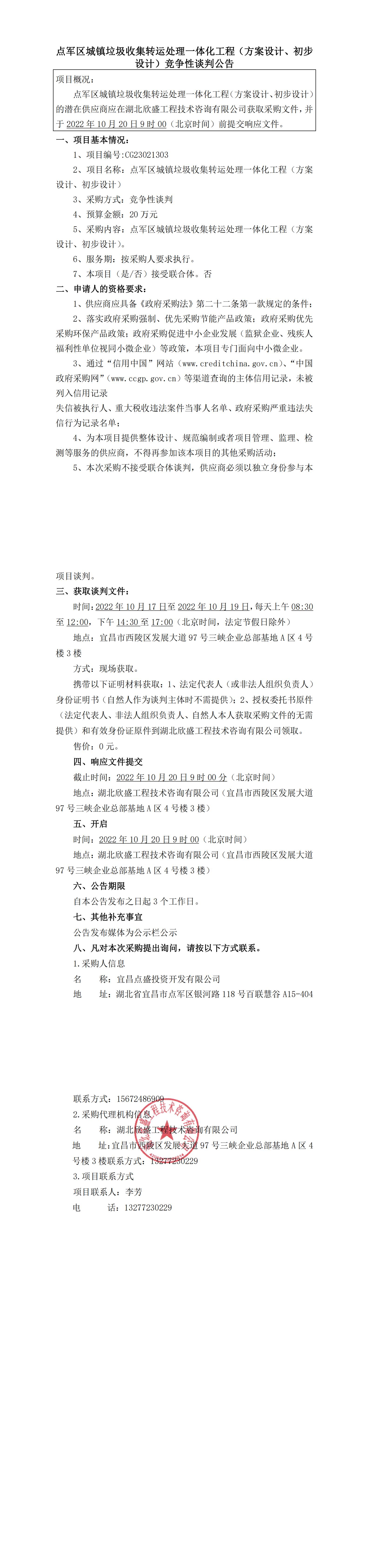 點軍區城鎮垃圾收集轉運處理一體化工程(方案設計、初步設計)競爭性談判公告