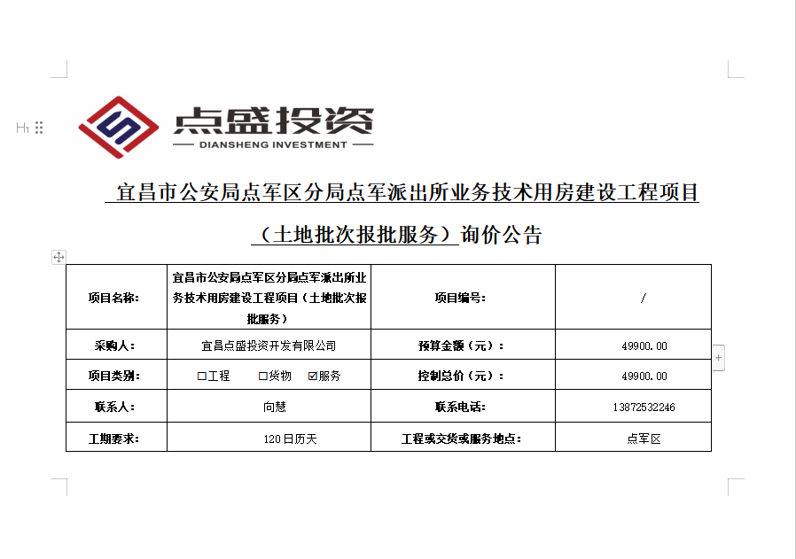 宜昌市公安局點軍區分局點軍派出所業務技術用房建設工程項目 (土地批次報批服務)詢價公告