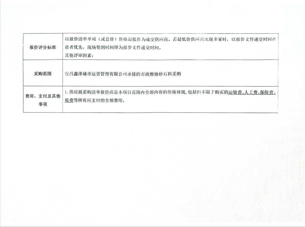 宜昌鑫澤城市運營管理有限公司市政維修砂石料采購項目詢價公告