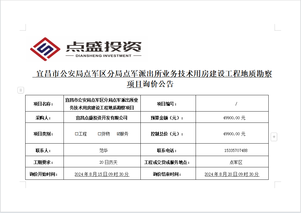 宜昌市公安局點軍區分局點軍派出所業務技術用房建設工程地質勘察項目詢價公告