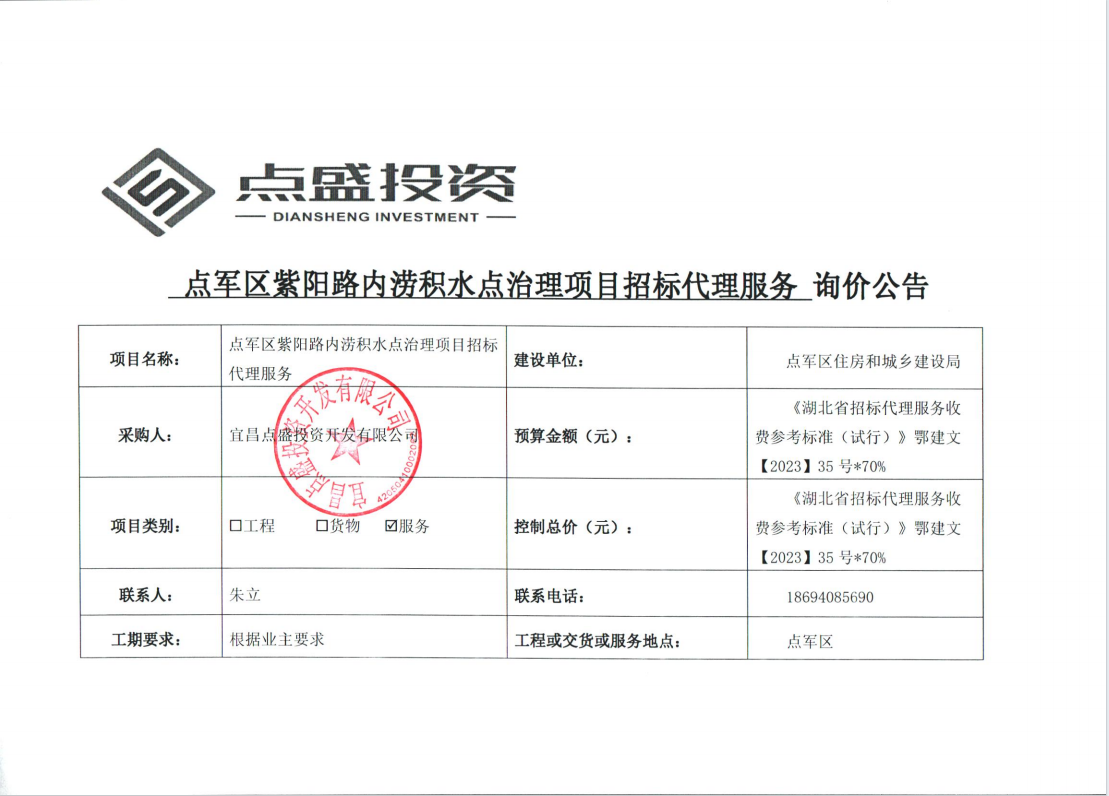 點軍區紫陽路內澇積水點治理項目招標代理服務詢價公告