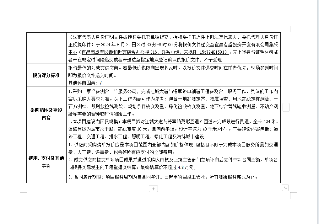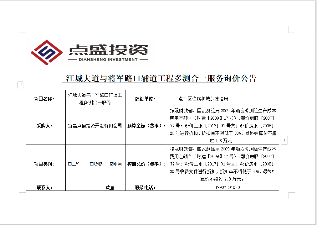 江城大道與將軍路口輔道工程多測合一服務詢價公告