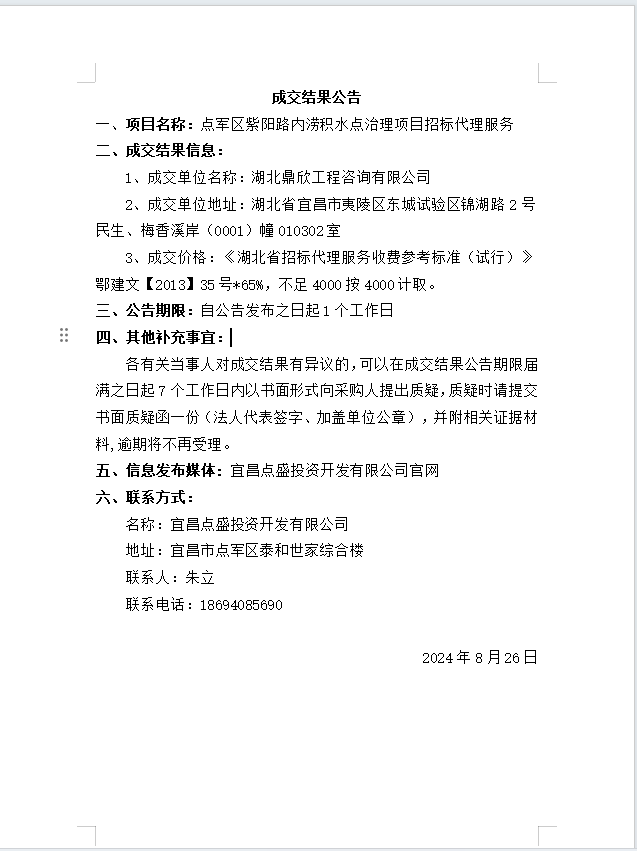 點軍區紫陽路內澇積水點治理項目招標代理服務成交公告
