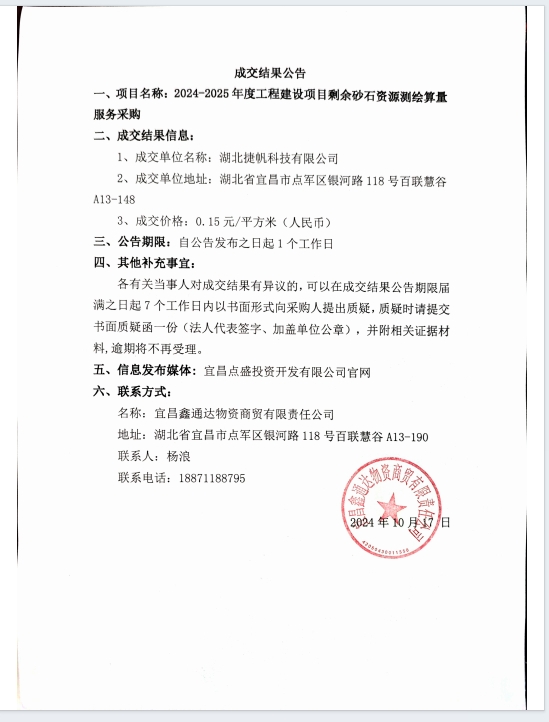 2024-2025年度工程建設(shè)項目剩余砂石資源測繪算量服務(wù)采購成交公告